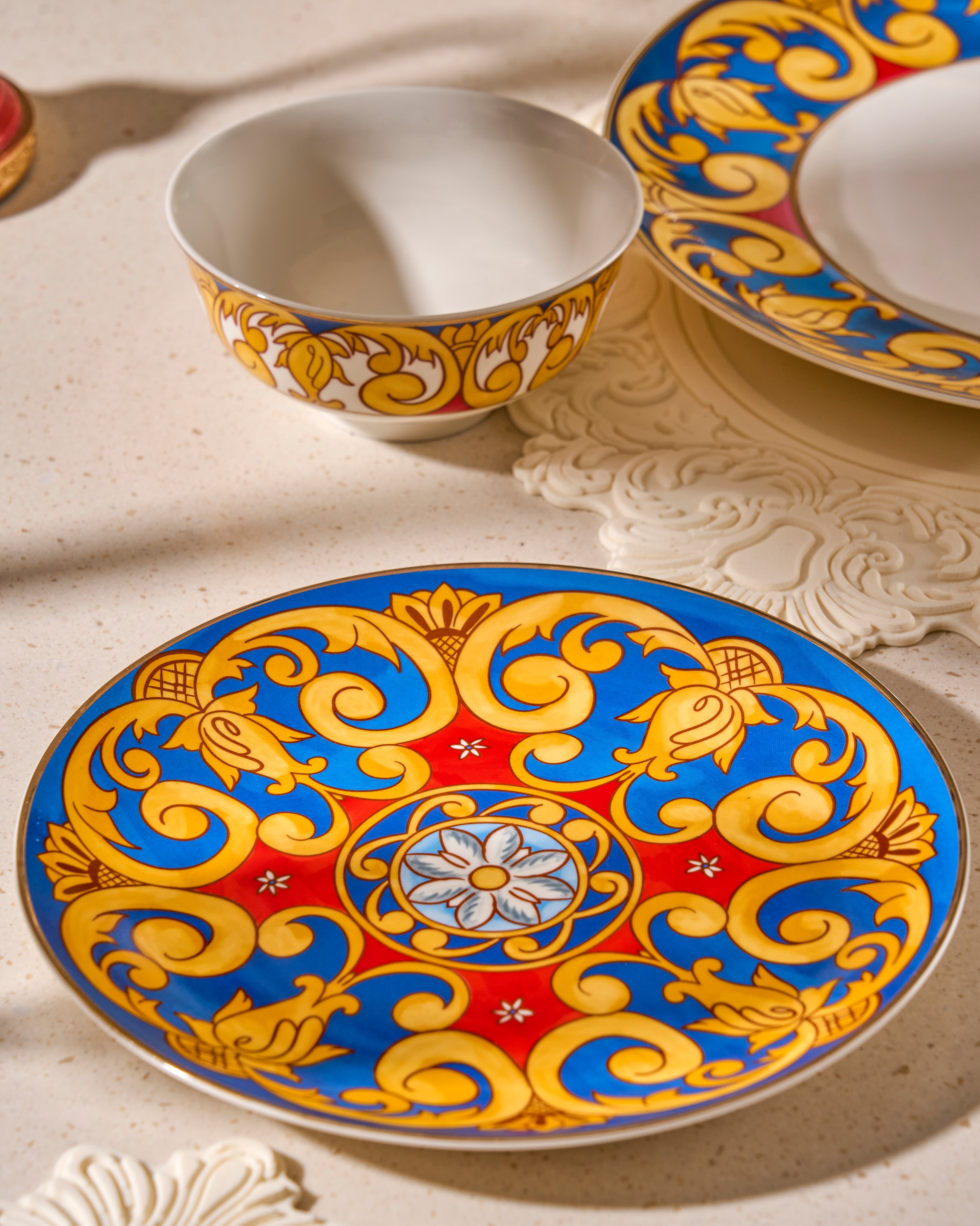 Whether serving daily dinners or laying a table for a special occasion, our Amalfi Nights starter plates are always a reliable option. Designed to blend versatility with interest, these intricate blue, red & gold detailed plates are the perfect backdrop to your favourite meals.