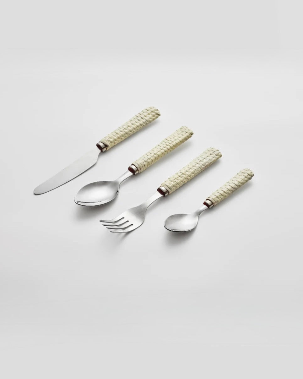 White rattan cutlery (4 piece set)