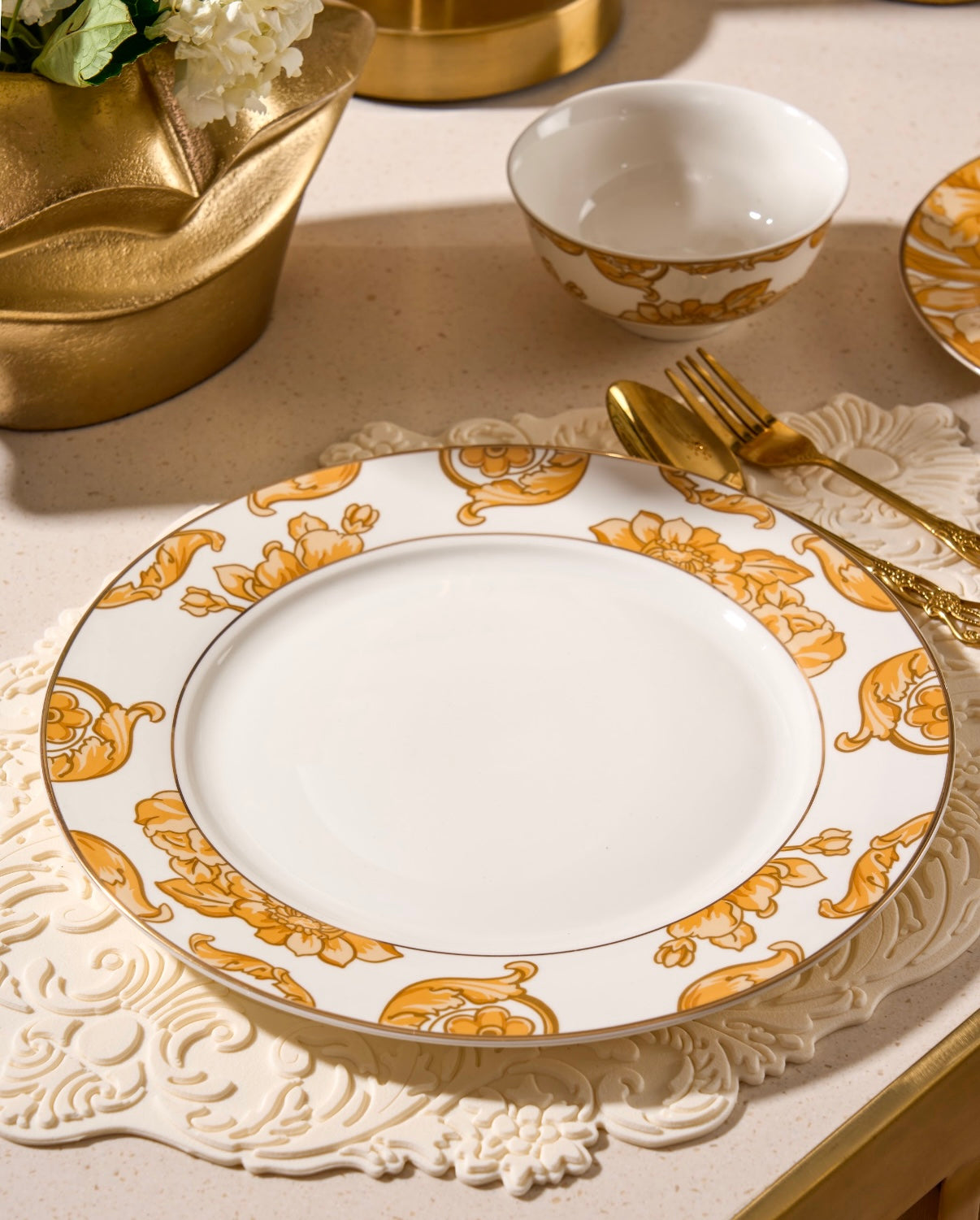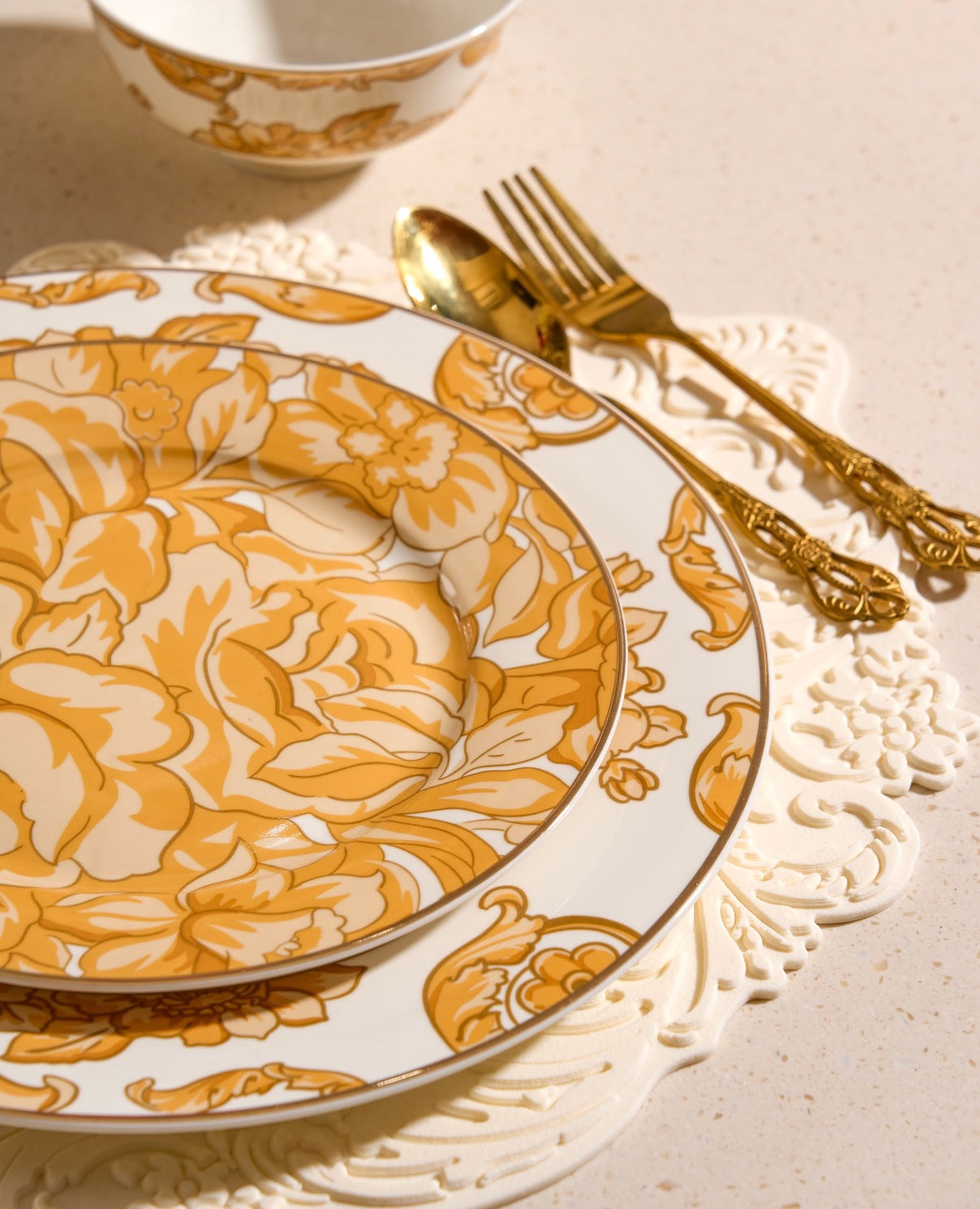 Our Amber Fleur Dinner Plates will elevate both your everyday meals and special dining experiences. With its versatile tone and delicate floral motifs design, these plates are perfect for adding grace to your table.