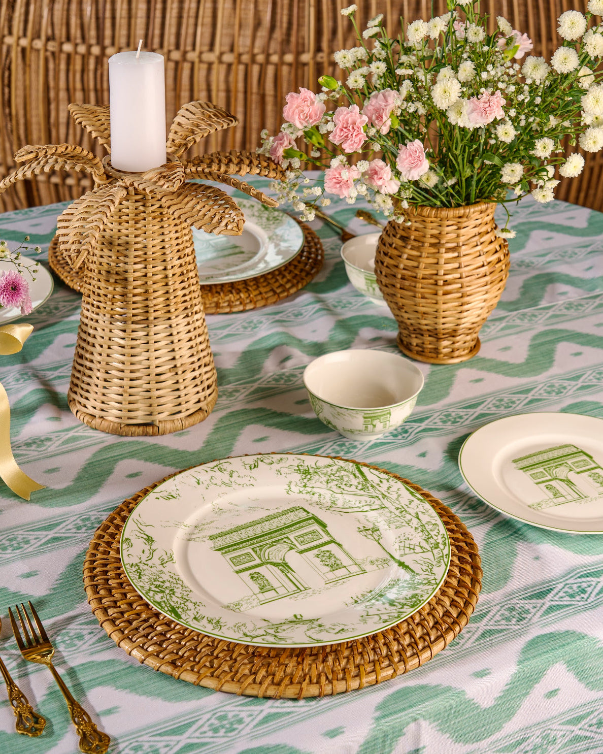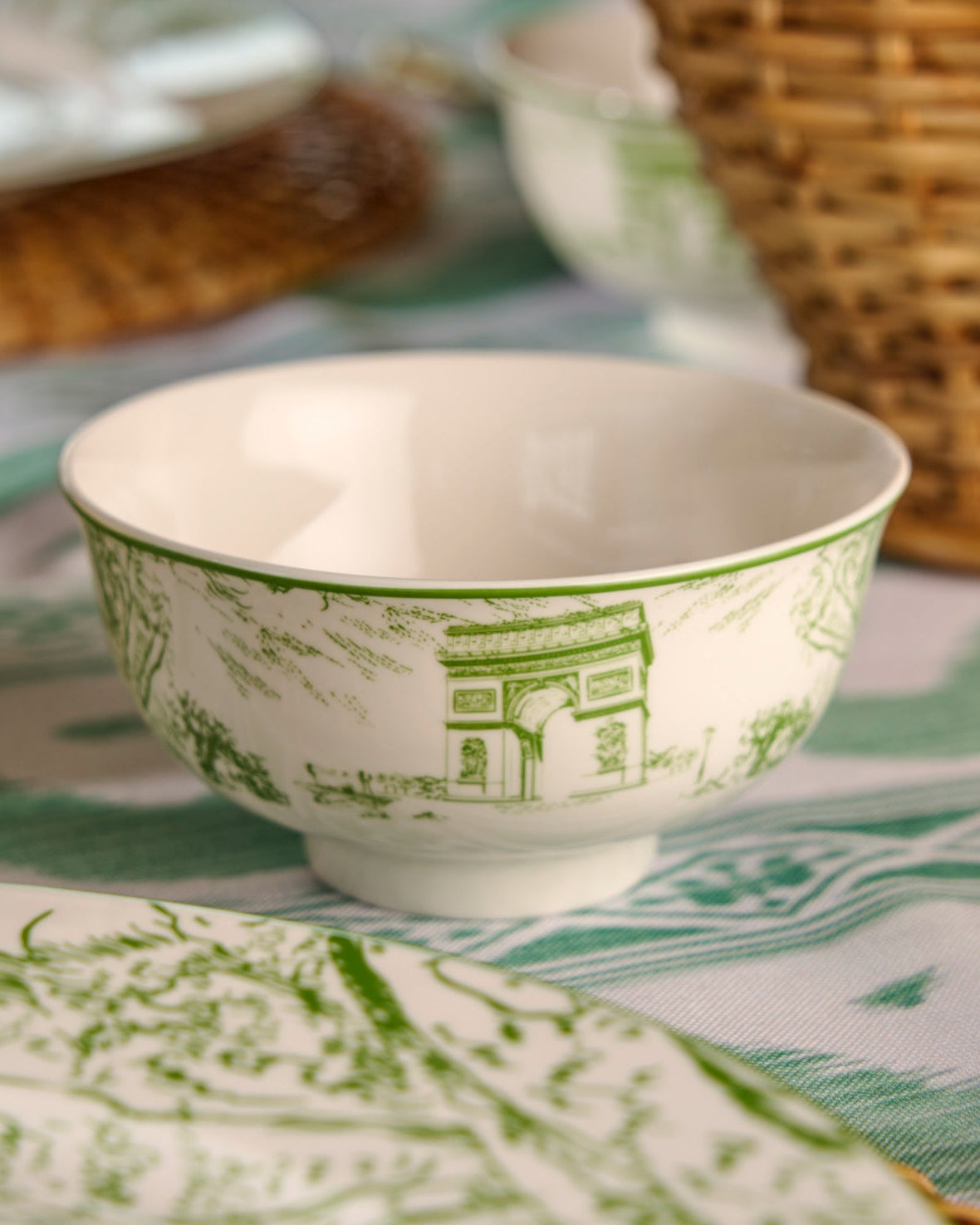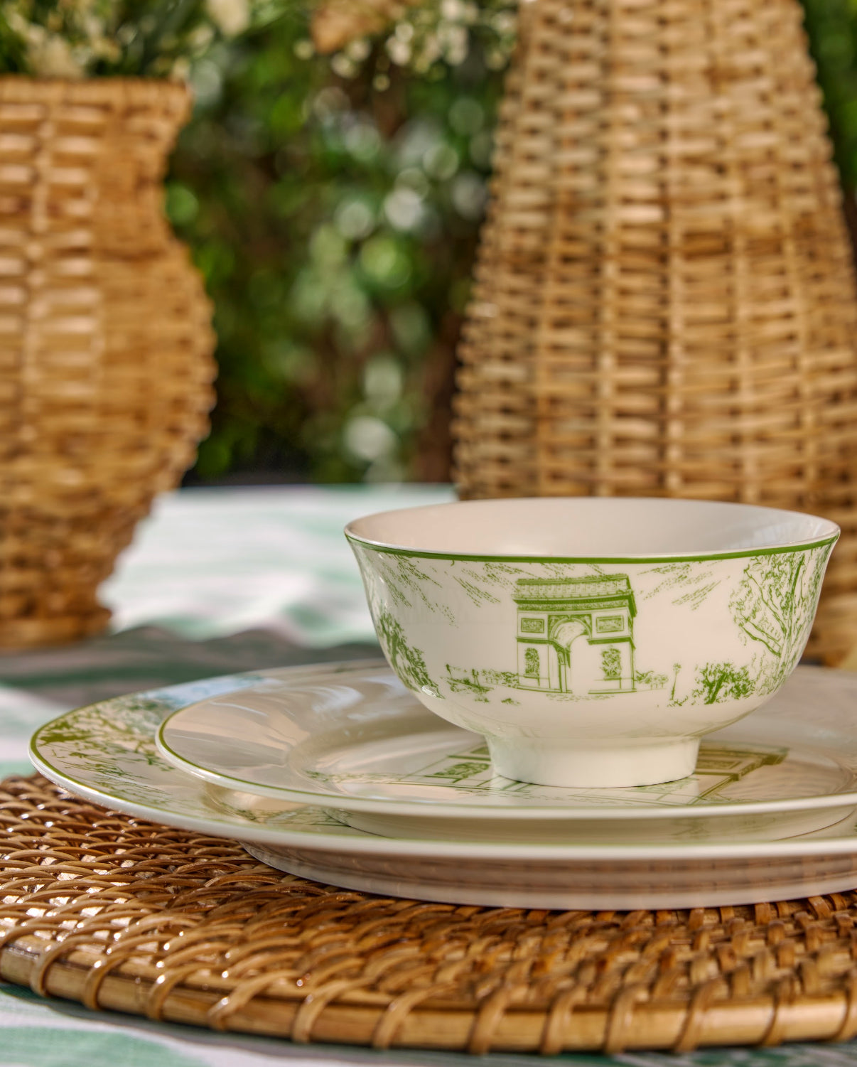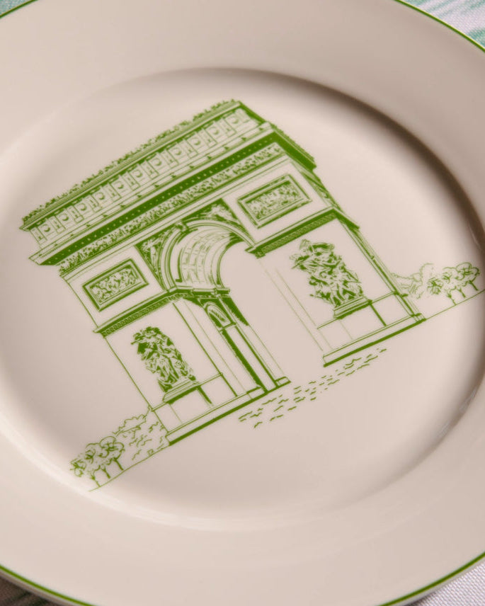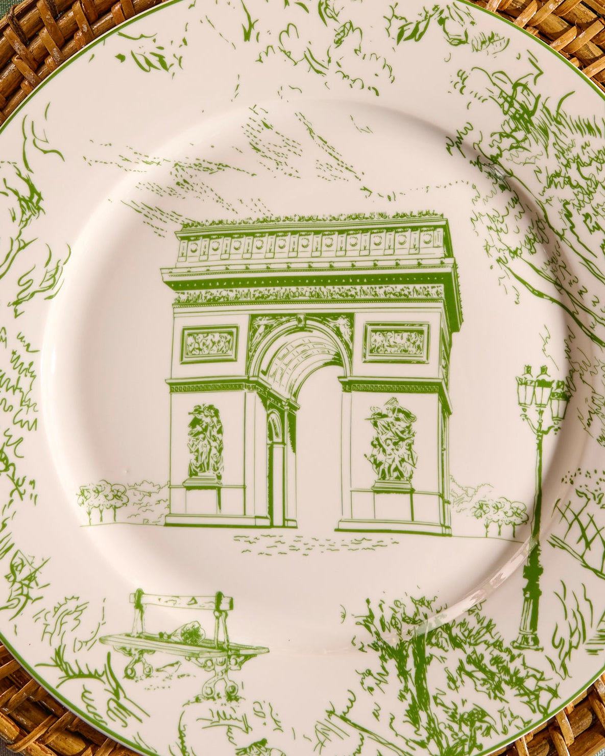 A 18-piece porcelain dinner set featuring intricate sketches of the iconic Arc de Triomphe. It brings a touch of old-world charm and refined craftsmanship to every tablescape.
