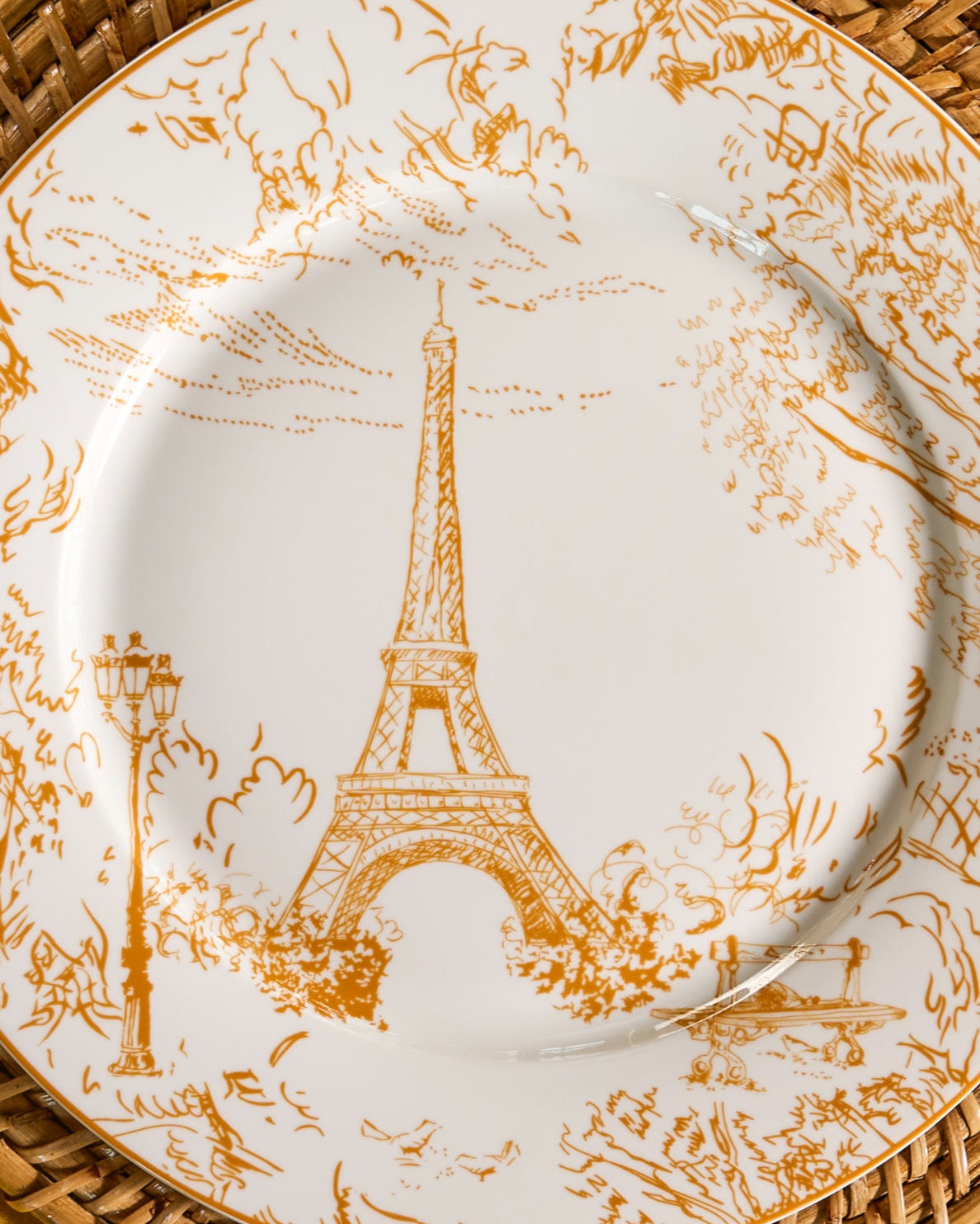 A 18-piece porcelain dinner set featuring intricate sketches of the iconic Eiffel Tower, it brings a touch of old-world charm and refined craftsmanship to every tablescape.