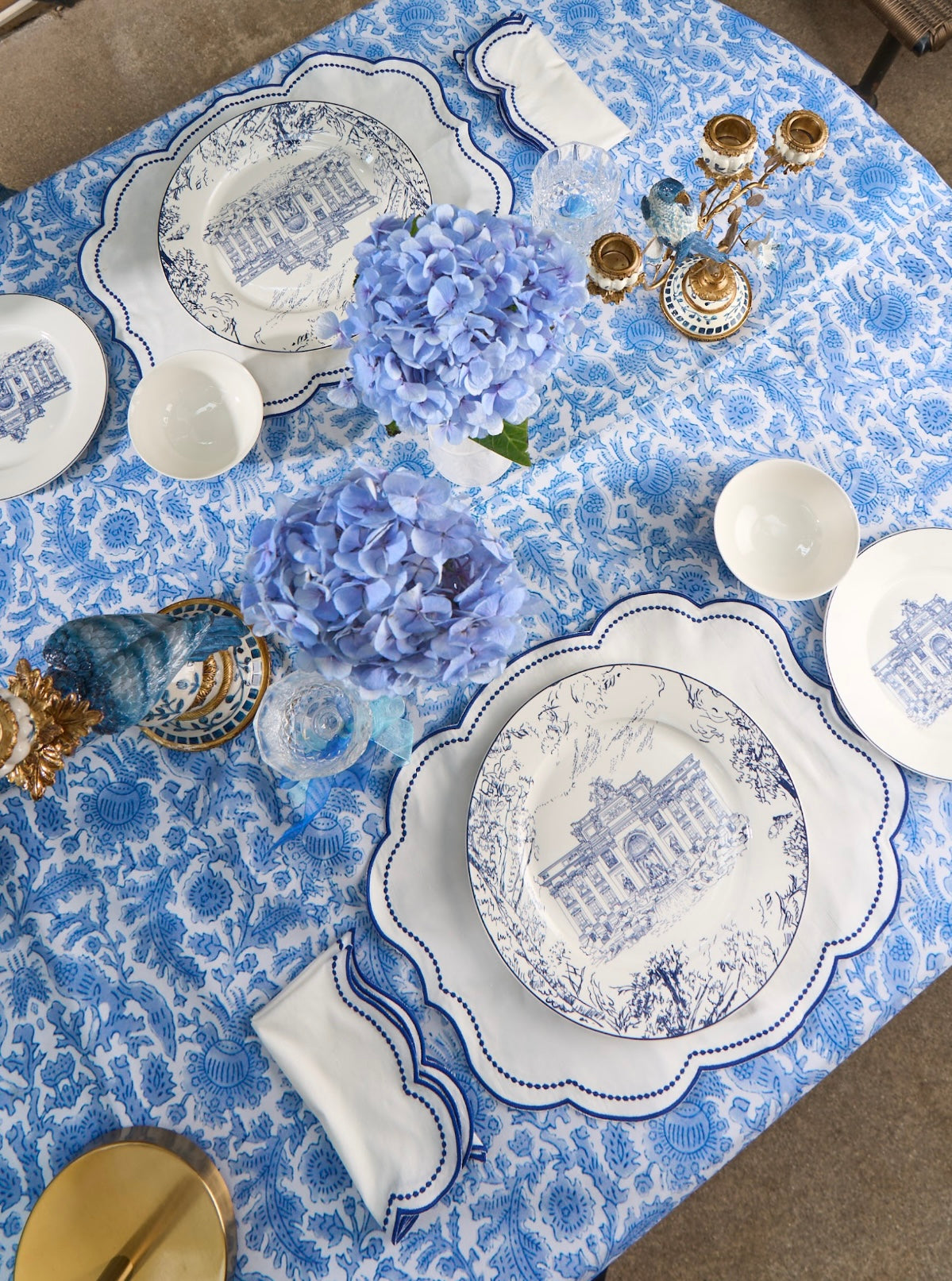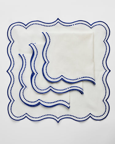 Our sophisticated Roma Azzura Napkins feature a crisp white base adorned with a rich royal blue embroidered border. Timeless yet striking, they bring a touch of Italian elegance to any tablescape, perfect for both intimate dinners and grand celebrations.