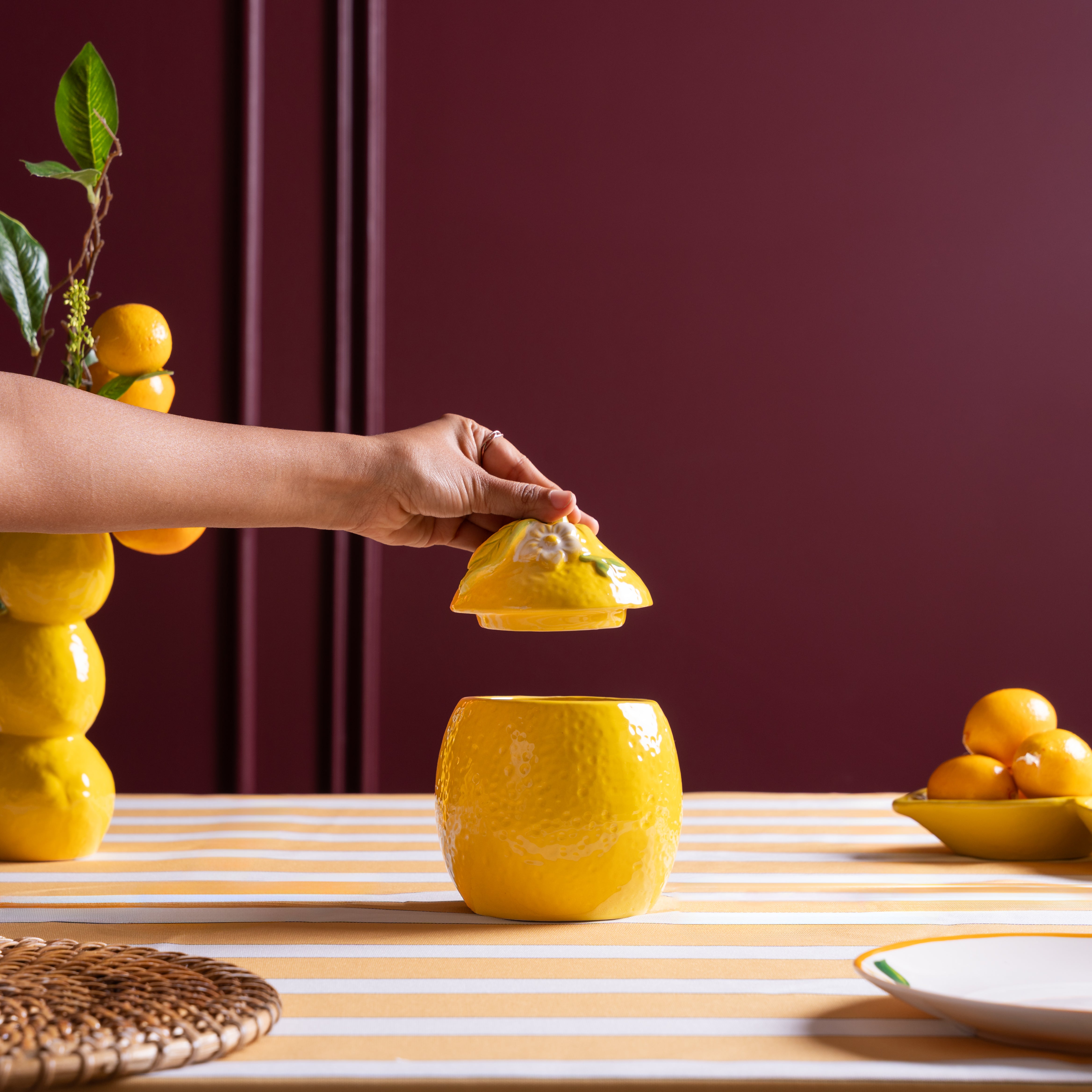 Give your tablescape an upgrade and store your snacks at the same time with our Lemon Jar.