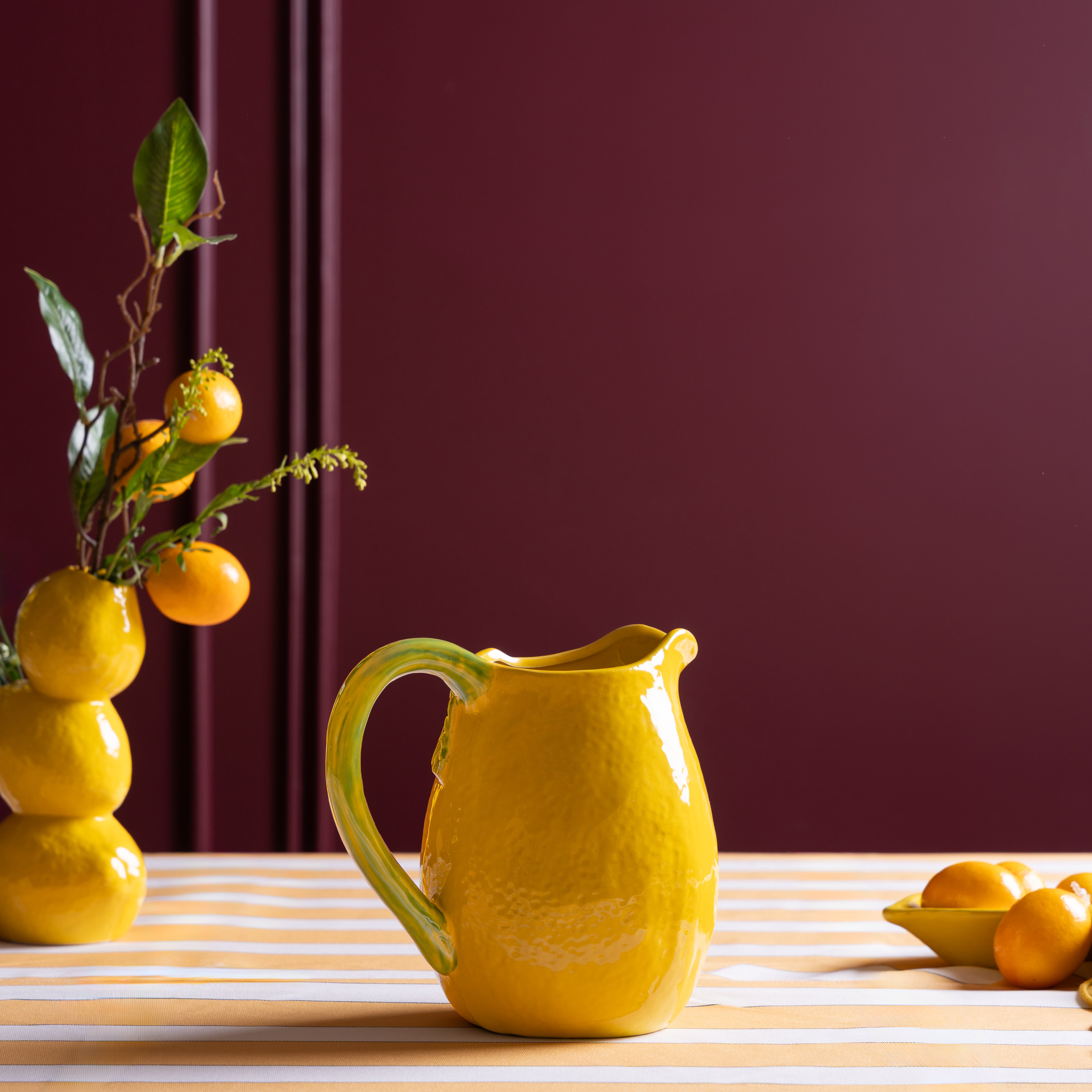 With its bright yellow body and leafy green handle, this cheerful pitcher is the perfect way to pour sunshine into your day.