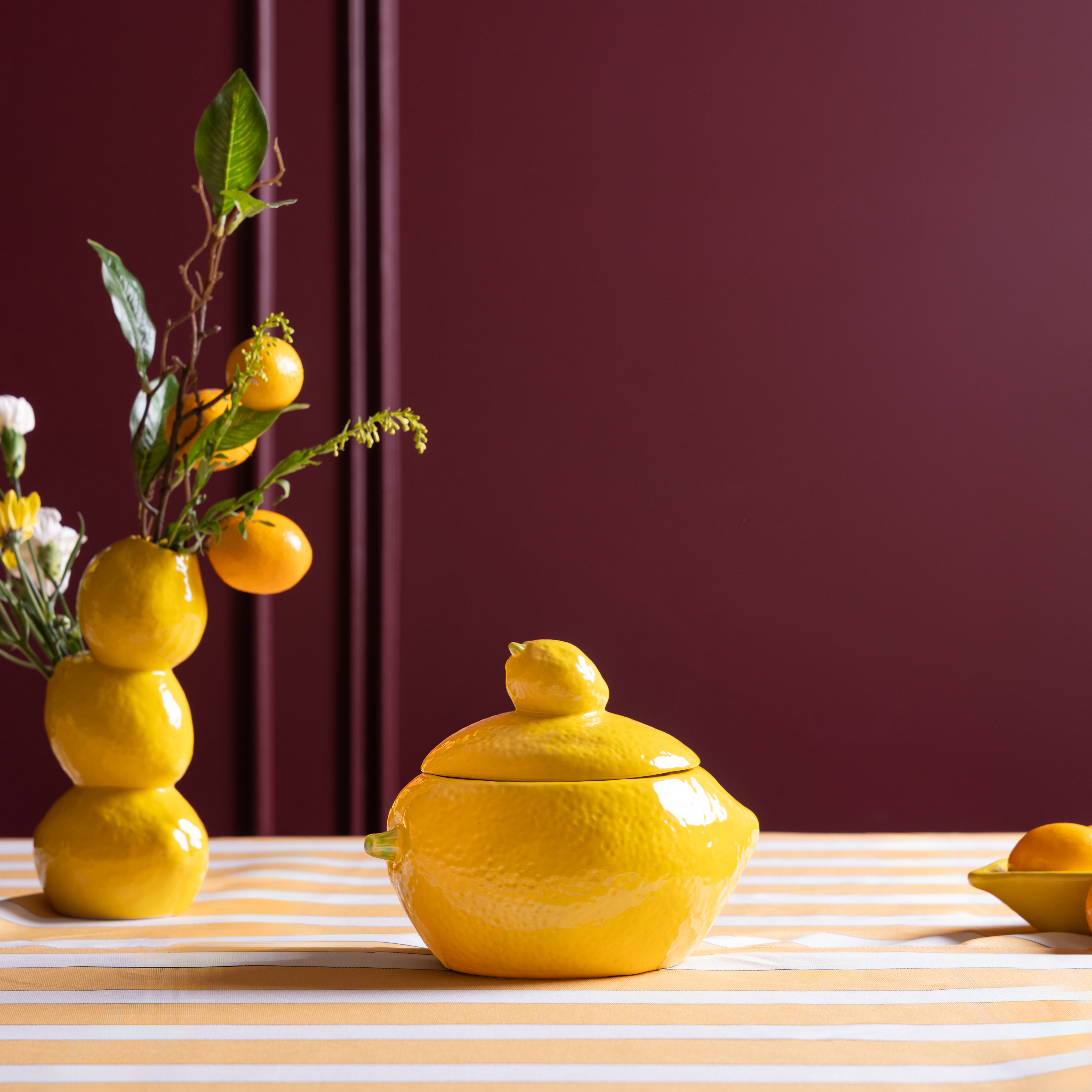 Give your tablescape an upgrade & store your snacks at the same time with our lemon tin.